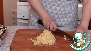 Сыр натереть на средней терке, а чеснок мелко порубить.