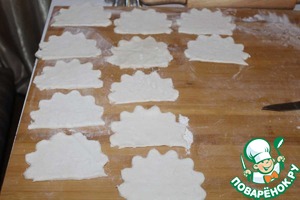 Немного раскатываем пласт теста. С помощью формы для кекса вырезаем ракушки.