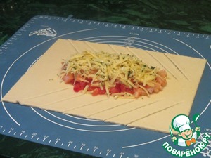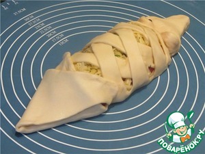 Пирог формировать лучше на противене, застеленным бумагой для выпечки или фольгой, т. к. сформированный очень трудно переносить.