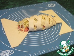 Тесто раскатать в прямоугольник, края подравнять (из обрезков будем формировать глаза и лапы).