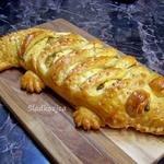 Выпекать в разогретой духовке при 200 °С. 10-15мин. (дать немного зарумянится), достать его из духовки и смазать взбитым яйцом, выпекать еще мин.10-15 до готовности.