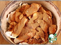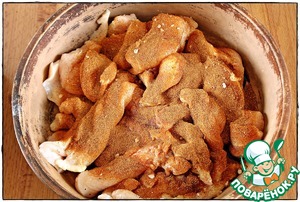 Нарезанное филе складываем в миску, солим-перчим, добавляем соевый соус, паприку или Ваши любимые специи, хорошенько перемешиваем и оставляем мариноваться минут на 15.