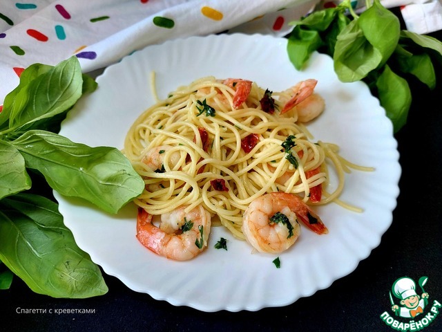 Приготовьте спагетти с креветками именно так! Вы с легкостью приготовите это блюдо, а результат поразит вас. Сочные креветки, вяленые томаты, паста и изысканный винный соус с чесноком. Это настоящий праздник вкуса!