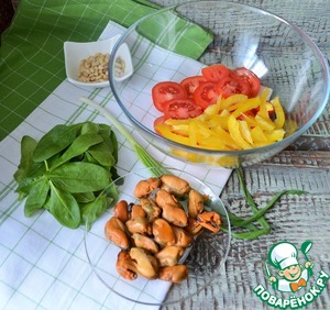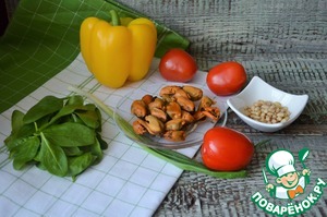 Ингредиенты для «Салат с копчёными мидиями и шпинатом»: