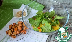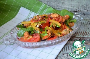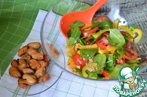 Рецепт «Салат с копчёными мидиями и шпинатом»: