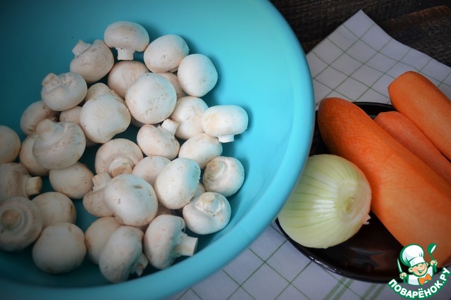 Грибы вымыть. обсушить. Грибы лучше взять самые мелкие. Овощи почистить.
