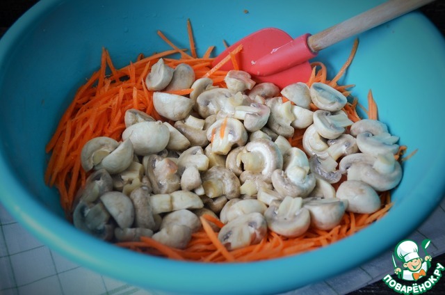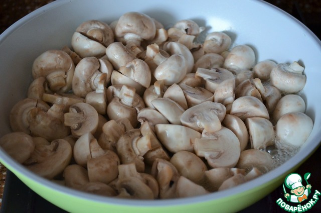 Мы с мясом так делали, но без грибов, с ними, я думаю, ещё вкуснее будет