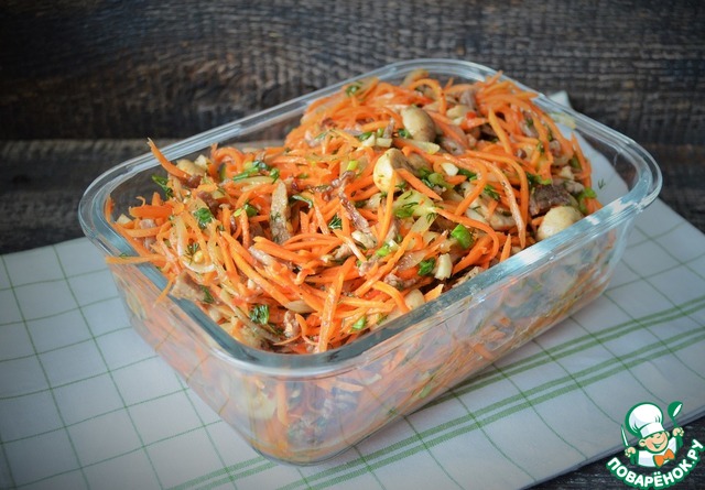 Вариант салата по мотивам корейского хе, но не с сырым мясом. На праздничном столе будет востребован, особенно мужской аудиторией. Ведь острое на закуску - самое то! P.S.: я предоставила вариант средней остроты, более привычной для многих семей, при желании можно добавить перец чили и чеснока ещё. Рекомендую.