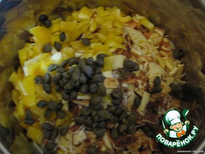 • Авокадо очистить, удалить косточку. Мякоть нарезать.
