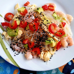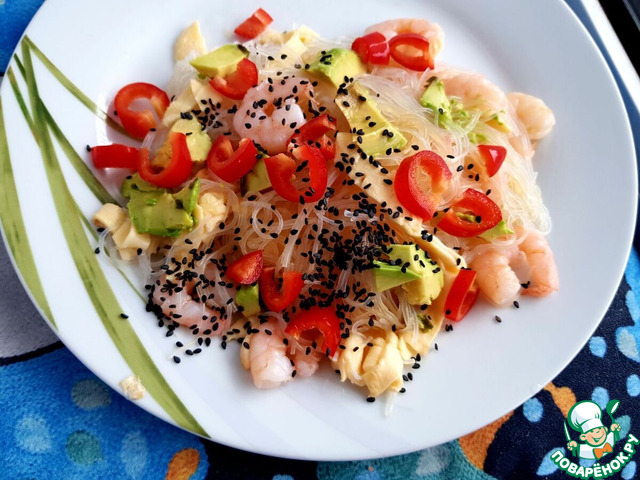 Рецепт «Салат с рисовой лапшой, сладкими креветками и авокадо»: