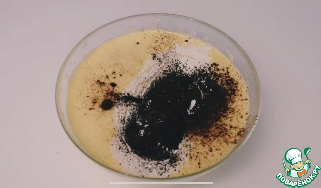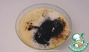 Добавляем муку, и какао порошок, топленое сливочное масло, хорошо все перемешиваем
