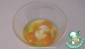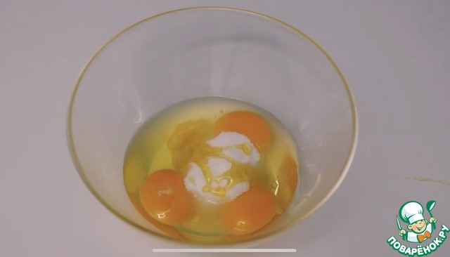 Добавляем яйцо куриные, желток яичный, мёд, сахар, взбиваем