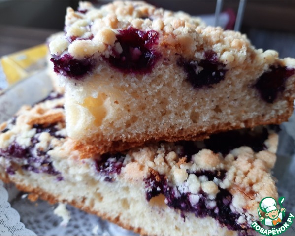 Для посыпки смешать сахарную пудру, муку и масло, перетереть в крошку и посыпать сверху пирог. Выпекать при 180 гр. 50-60 мин. (ориентируйтесь по своей духовке).
