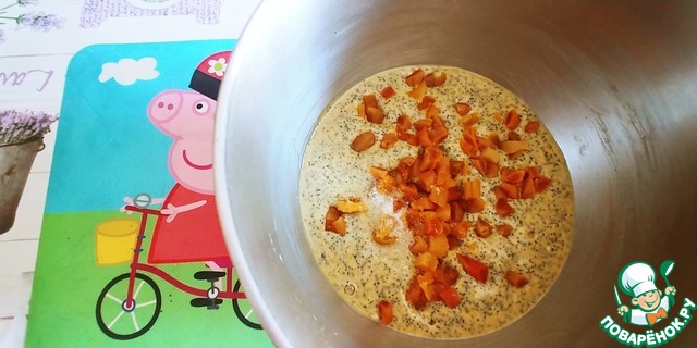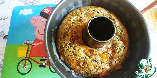 Кекс получился чуть влажный и очень маково-абрикосовый, ничего менять не стану.
