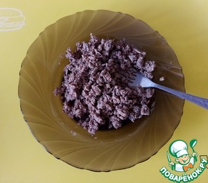 Шпроты разомните вилкой до однородного состояния.