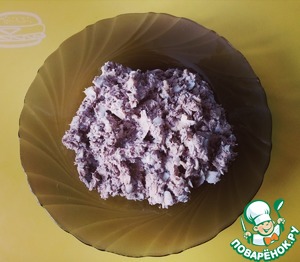 Добавьте 1-2 ст. л. майонеза. Намазка должна получится мягкой, но не растекаться. Потому количество майонеза регулируйте.