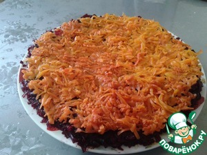 Морковка тоже сварить, очистить и тоже натереть на крупной терке