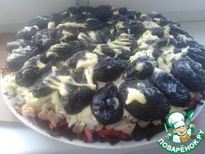 5й слой, последний - Плотно раскладываем чернослив, внутри которого сырой!! грецкий орех