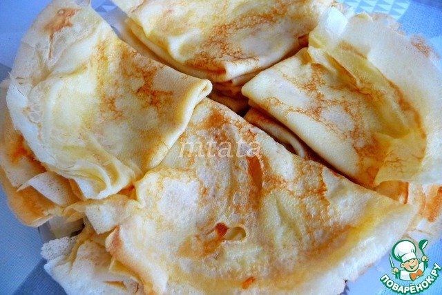 Искала у нас на сайте блины без соды и дрожжей. Ну, вот захотелось мне таких)) И что-то не попался мне такой рецепт, чтобы уж сильно понравился. Вероятно, я просто не долистала до "того самого" рецепта, а потому нарыла в просторах интернета вот такой рецепт, который так и назвала без всяких затей "Блины без соды и дрожжей". Блины получились тонкие и вкусные. И, главное, первый был не комом)) Угощайтесь!