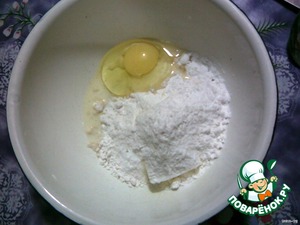 Растереть сливочное масло, сахарную пудру и яйцо в однородную массу