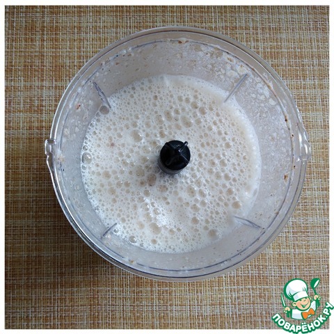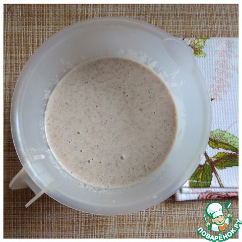 Из отварной гречки нужно сделать гречневое пюре гладкое. Я буду использовать измельчитель. Измельчаем отварную гречку, постепенно добавляя дрожжевую смесь. Можно использовать погружной блендер или протереть кашу через сито вручную, а далее замешивать тесто ручным венчиком. Это в том случае, если у вас нет никакого блендера.