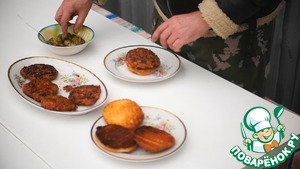 Жарить котлеты на одной стороне, затем перевернуть и выложить на решетку смоченные растительным маслом булочки. Жарить до готовности, снять сначала булочки, а потом котлеты.