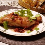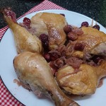 Бёдрышки получились оч, очень вкусными, нежными, сочными, ароматными. Лук карамелизировался и приобрёл нежно вишнёвый оттенок и вкус его стал гараздо приятнее, чем ожилала. Вишня здесь сыграла неповторимую роль: выделенный сок и слияние коньяка придали соусу божественный вкус и приобрёл нежно-густоватую консистенцию. Чеснок не выделяется вообще. Съели на ужин без гарнира. Просто так и нисколько не пожалели! Косточки вишни заставляют задуматься, чтобы их не проглотить! Божественно вкУуууснОоооо! Спасибо огромное за ецепт ешЁ рАз!