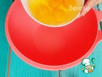 Делаем бисквит Разбиваем 6 яйц и туда добавляем 150 грамм сахара перемешиваем несколько минут миксером до белой пышной массы, она должна увеличиться в 2 -3 раза |