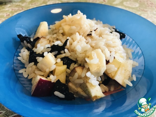 Рис в сочетании с сочными фруктами, корицей и мёдом обладает отменным вкусом. Замечательное полезное блюдо для поста и не только. Послужит отличным завтраком для всей семьи, в том числе и для детей.
