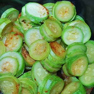Кабачки нарезаем кружочками и тушим с паприкой.