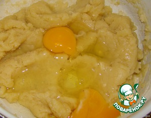 Доводим до кипения воду с маслом и солью.. Всыпаем помешивая муку.. завариваем тесто... Мешаем что бы не было комков.. Смешиваем тесто с яйцами