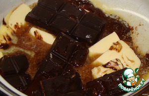 На водяной бане плавим шоколад с маслом... В расплавленый шоколад добавляем взбитые сливки и хорошо перемешиваем