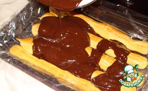 Готовые пальчики выкладываем в форму. застеленую пленкой.. и заливаем получившейся шоколадной массой