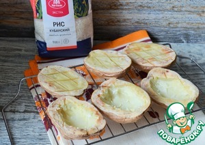 У горячего картофеля аккуратно извлечь мякоть, формуя лодочки.