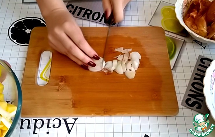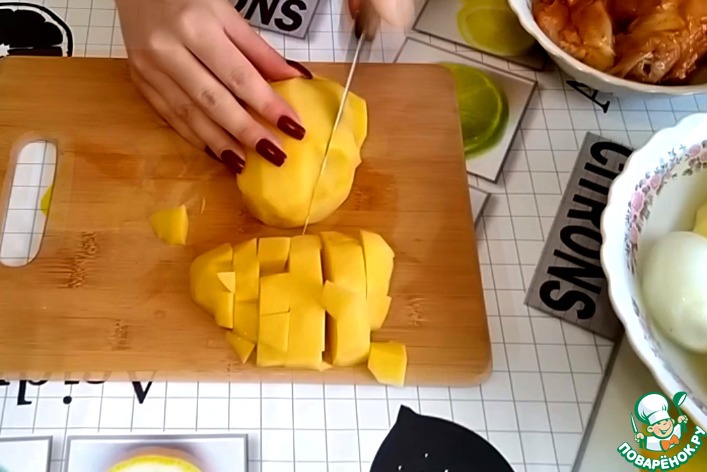 Картофель нужно нарезать небольшими кубиками.