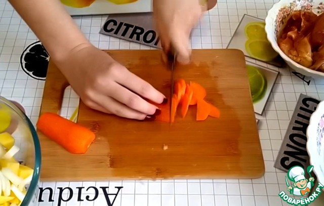 Морковь нарезаем кружочками.