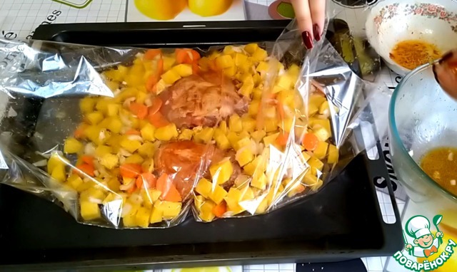 Рецепт «Картофель с курицей в рукаве»: