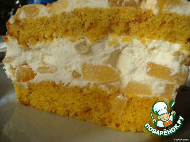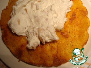 пропитaнным коржом, сверху выложить оставшыйся крем