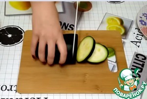 Нарезаем кабачки кружочками толщиной примерно 1 см.