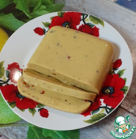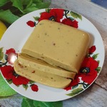 Кстати, варится очень быстро. Главное - мешать, а то комочки быстро образуются. Остужала получившуюся массу около суток в холодильнике, прочитав предварительно комментарии о гороховом вкусе сразу после приготовления. В итоге получился плотный, ни на что не похожий по вкусу сыр (?) с небольшим количеством сыворотки. Из обычной тарелки (ни чем не смазывала) просто вылетел
