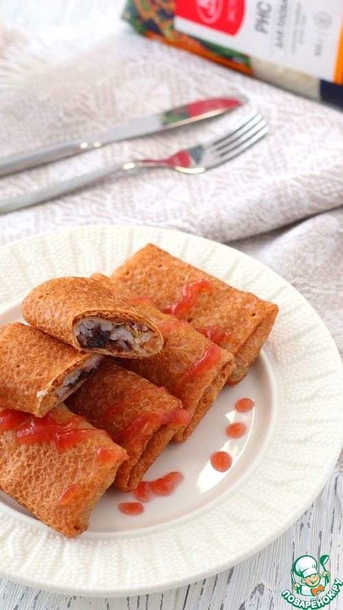 Рецепт «Постные красные блины с фруктовым рисом»: