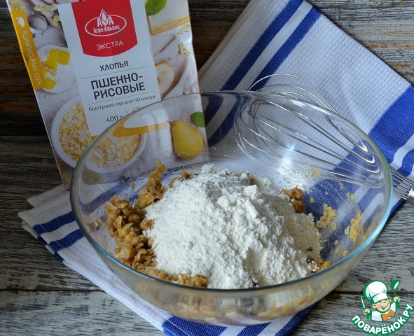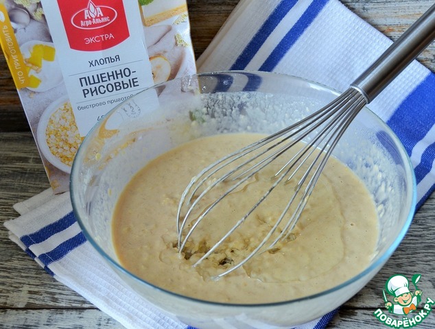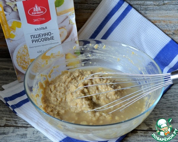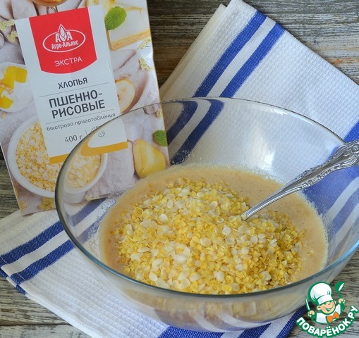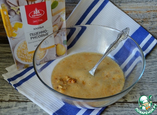 Добавить хлопья, размешать и оставить на 10 минут. Я использую пшённо-рисовые хлопья от ТМ Агро-Альянс.