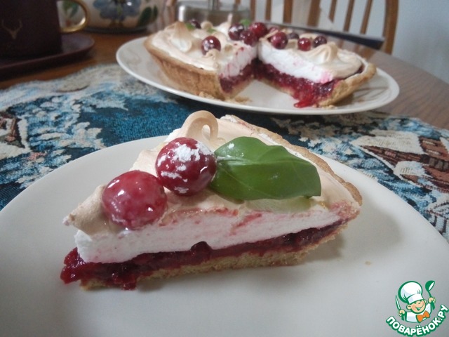 Предлагаю приготовить открытый пирог с клюквой и меренгой. Это прекрасное сочетание нежного рассыпчатого теста, ягодной кислинки и воздушной меренги. Ягоды клюквы Вы можете заменить любыми другими. При этом не забывайте регулировать количество сахара.