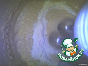 Отдельно взбиваем белок, добавляем желток, взбиваем, добавляем сахар, взбиваем.