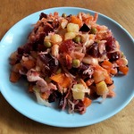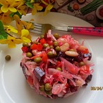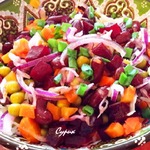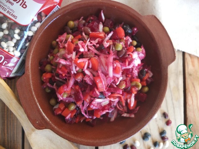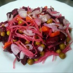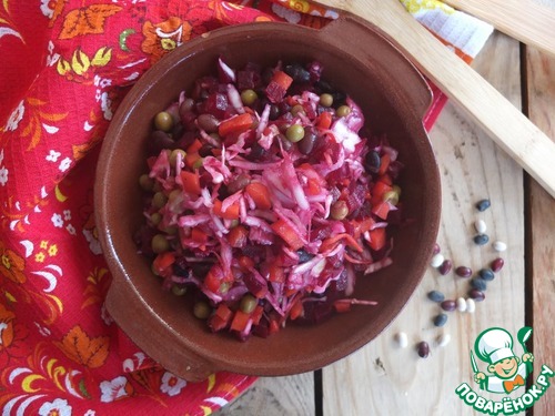 На одну из домашних семейных посиделок свекровь моей сестры принесла банку своего винегрета. Салат оказался не в классическом исполнении, но новое прочтение мне очень понравилось! Салат легкий, хрустящий, гармоничный, прекрасно разнообразит постное меню!