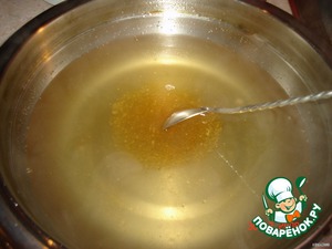 Бульон, процеженный из под овощей, смешать с желатином, процедить и остудить.