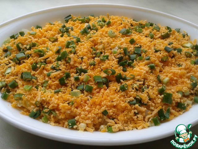 9 - мелко нарубленная зелень вперемешку с тремя рублеными желтками