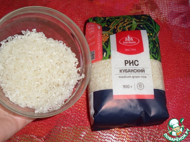 • Для приготовления я буду использовать рис "Кубанский" ТМ "Агро-Альянс". Отмеряем необходимое количество крупы.