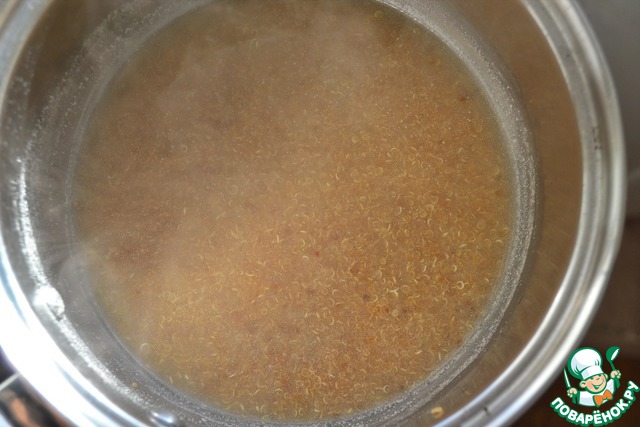 Киноа тщательно промыть и замочить на ночь. С утра опять промыть.