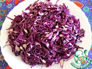 Краснокочанную капусту нарезаем небольшой соломкой.
